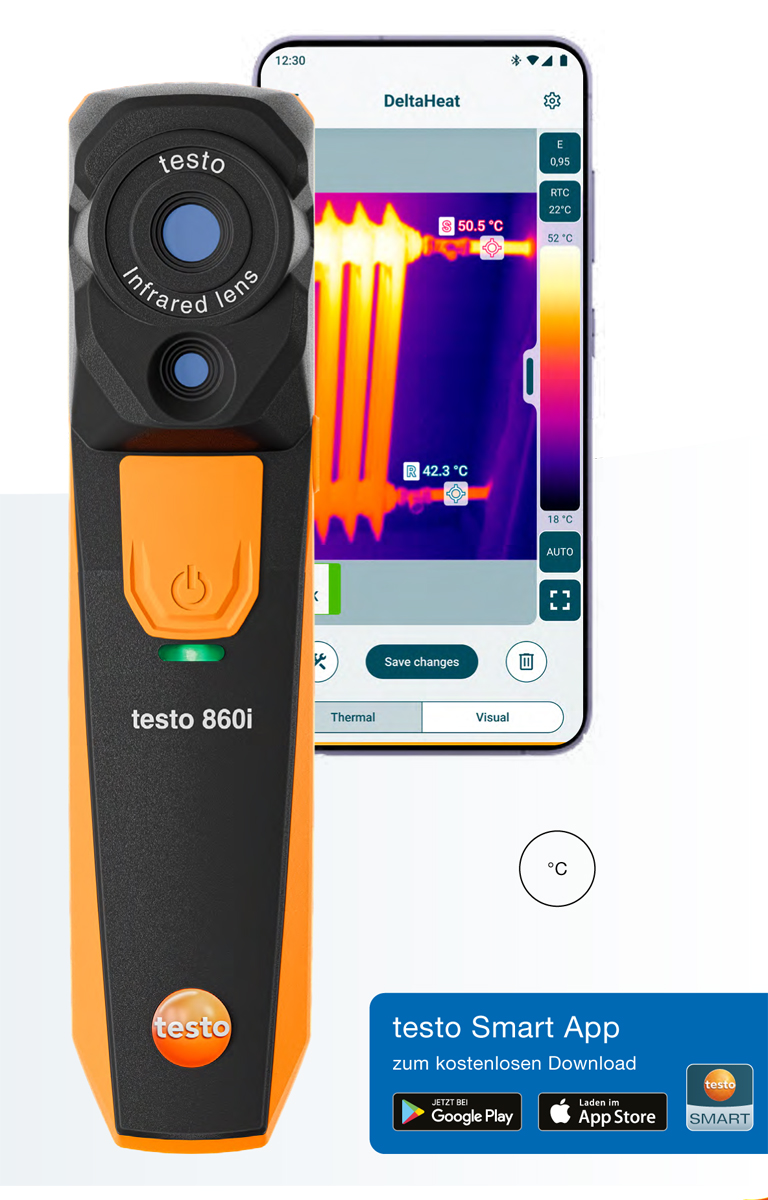 für Smartphones mit einfacher Bedienung und Anzeige über testo Smart App